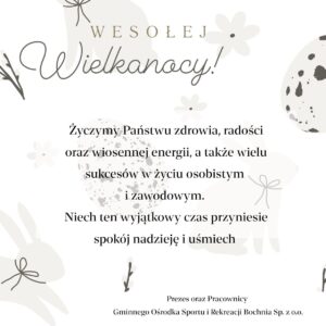 Komunikat zbiorczy Gminnego Ośrodka Sportu i Rekreacji Bochnia Sp. z o.o.