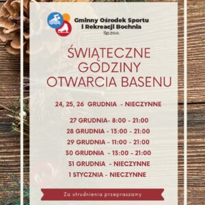 Komunikat zbiorczy Gminnego Ośrodka Sportu i Rekreacji Bochnia Sp. z o.o.